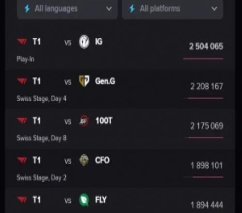 电竞体育10月24报道 外媒统计S15全球总决赛至今海外峰值前五的比赛均有T1,具体...