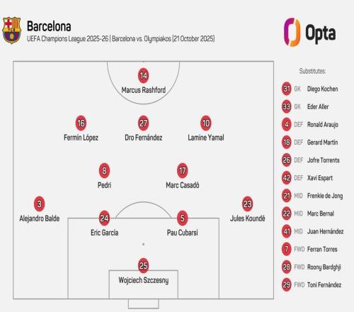 平均年龄23岁214天,为欧冠改制后巴萨第三年轻的首发阵容