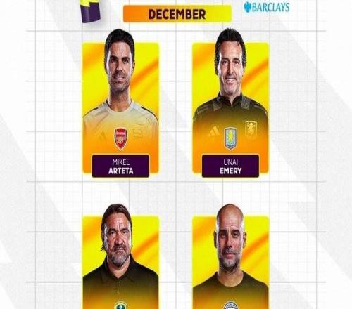 北京时间1月8日,英超联赛公布2025年12月英超最佳主教练的四位提名人选。阿尔特塔、埃梅里、法尔克与瓜迪奥拉...
