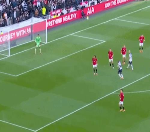 而在丢球时段,尤其是第一球的时候,单单回顾射门环节,你可能会觉得曼联的运气很差,皮球打在德里赫特的脚上形成了变线: