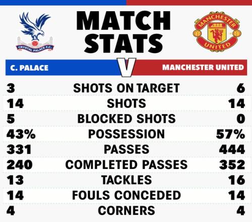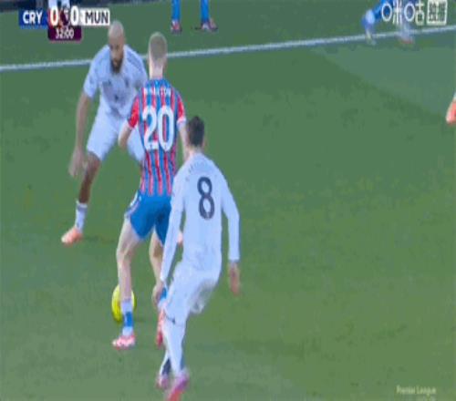 曼联的防线岌岌可危,水晶宫上半场获得大量机会。第15分钟,德里赫特头球解围,皮球却打在莱尼·约罗脚上反弹,马特塔获得单刀机会,但他的射门偏离了球门,红魔逃过一劫。